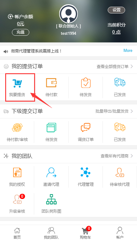 在首页我的提货订单”选项中,点击第一个“我要提货”进入订货页面